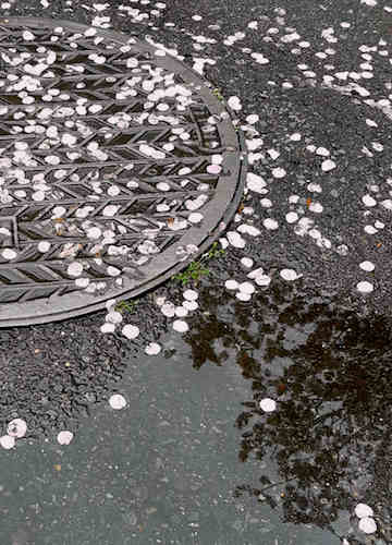 花びらだらけのマンホールを発見。