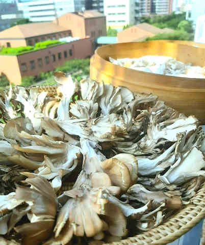 マイタケは天日に干して栄養up。