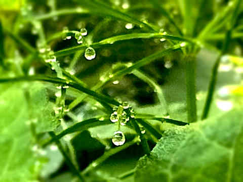 辺りにはかわいい草のしずくがいっぱい。