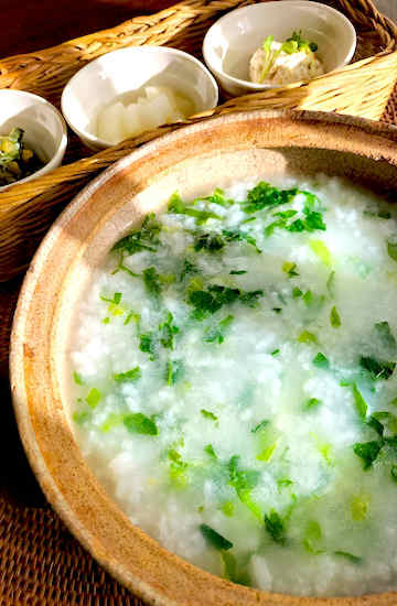 食べる七草がゆ。