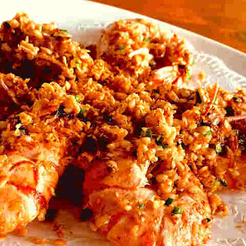 マレーシア風空心菜炒めや海老の揚げ物。
