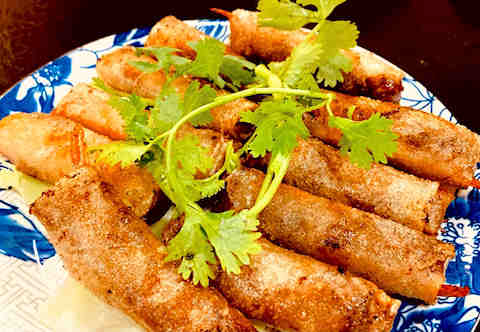 ライスペーパーで包み揚げた料理はビールにぴったり。