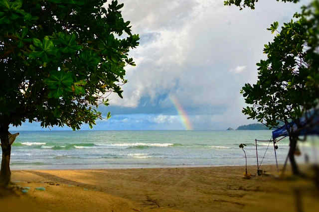 海の向こうに虹を発見。