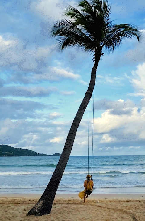 ヤシの木ブランコに乗ってユラユラ。
