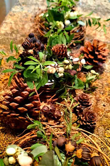 あちらこちらに木の実を飾って